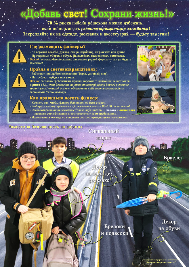 Учащиеся 5 класса – Ивашко Мария, 6 класса – Рыбаченок Платон, 7 класса – Бальников Алексей приняли участие в районной олимпиаде по ПДД. Ребята сняли видеоролик по правилам поведения в школьном автобусе (Диплом 1 степени), а так же разработали школьную листовку “Добавь свет! Сохрани жизнь!” (Диплом 2 степени).