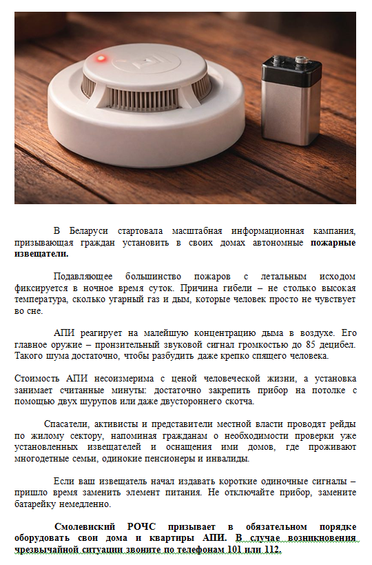 В Беларуси стартовала масштабная информационная кампания, призывающая граждан установить в своих домах автономные пожарные извещатели.
