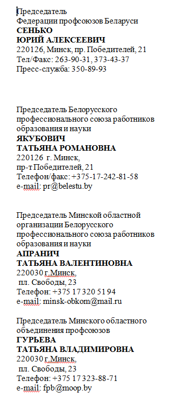 Главный правовой инспектор труда Белорусского профессионального союза работников образования и науки